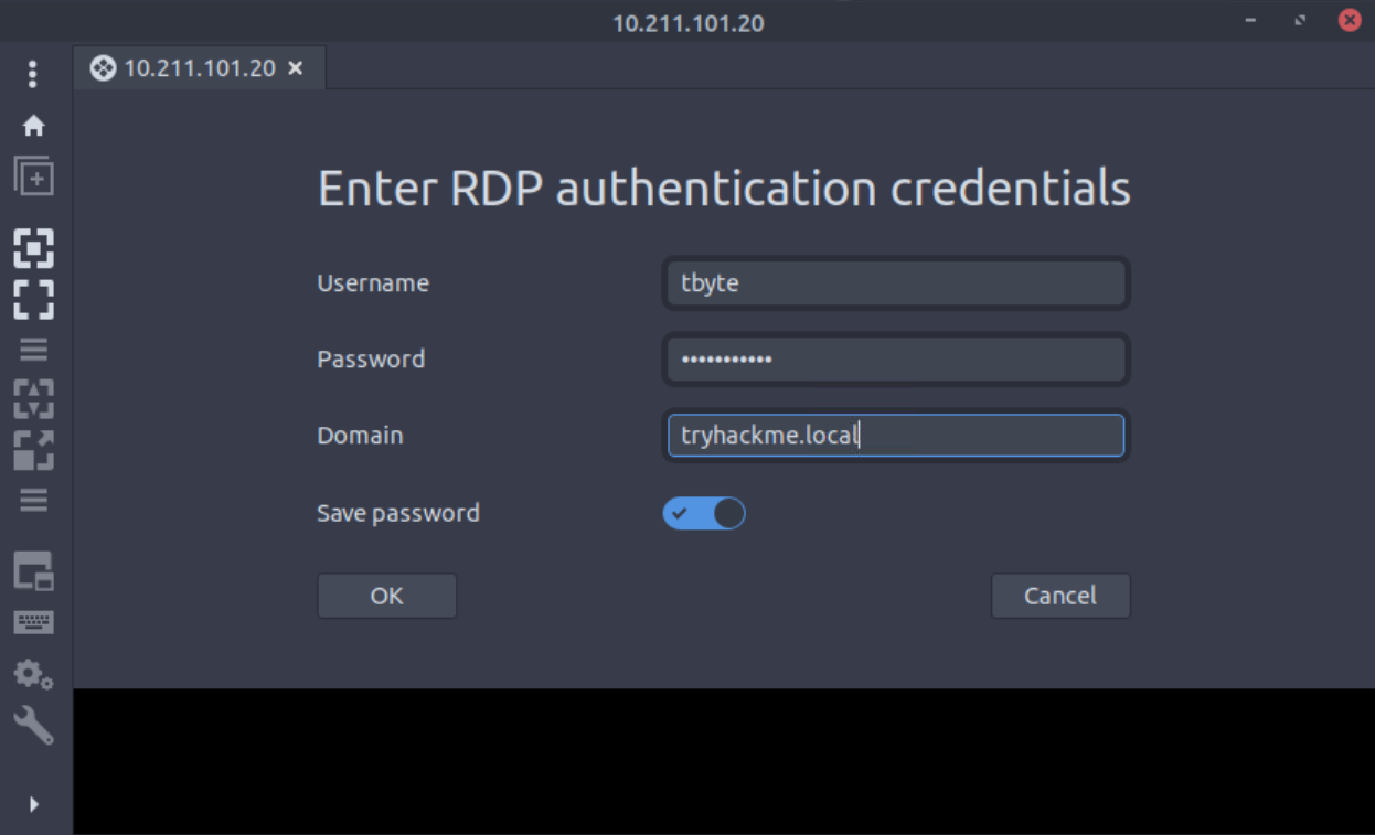 - Remmina: We are provided with credentials for a Windows Server 2019 account which we can use to log in to RDP using Remmina.